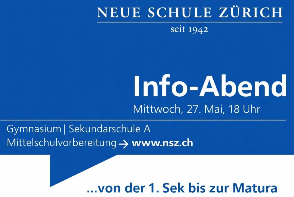 Kommen Sie an unseren nächsten Infoabend – unbedingt zusammen mit Ihrer Tochter oder Ihrem Sohn. Finden Sie heraus, ob die NSZ die richtige Schule für Sie ist. Oder vereinbaren Sie rechtzeitig ein Informationsgespräch (044 360 50 60 oder auf info@nsz.ch).
